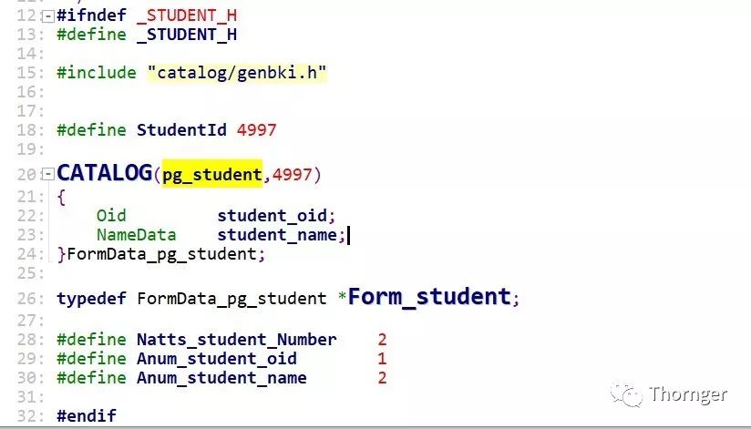 添加必要的宏定义,这些定义主要是为了后期编码方便。例如:StudentId、Natts_student_Number、Anum_student_name、Anum_student_name。