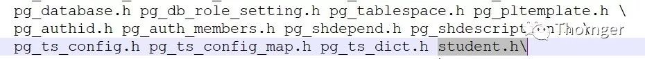 6、修改Makefile信息,对应\src\backend\catalog中的Makefile。添加新添加的系统表头文件
