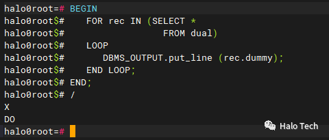 halo0root$# DBMS_OUTPUT.put_line (rec.dummy);