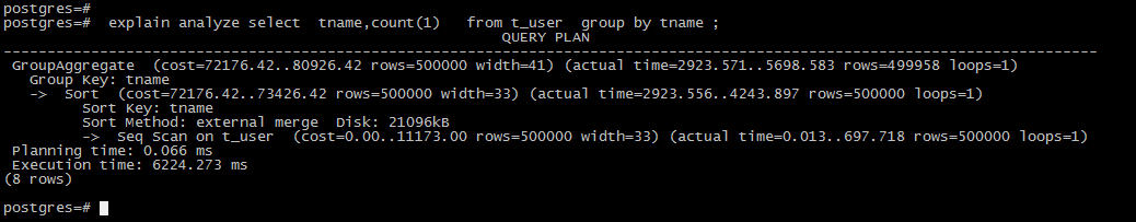 第五步:对第三步hash结果集进行聚合算并最终返回结果集1行。