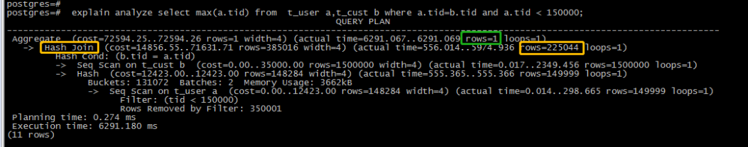 注意这里都是估算,查看实际执行的信息需要使EXPLAINANALYZE,如下: