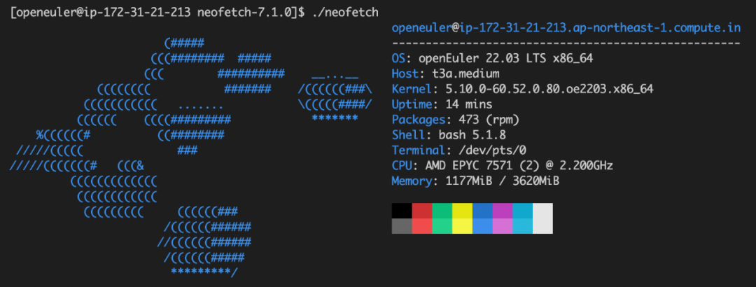 openeuler的账号并设定仅使用 ssh key 登录,同时 root 账号的 ssh 登录也会被禁止。磁盘的 root 分区会自动扩容到我们设定的 EBS 磁盘大小,用户数据中填写的脚本也将被自动执行。
