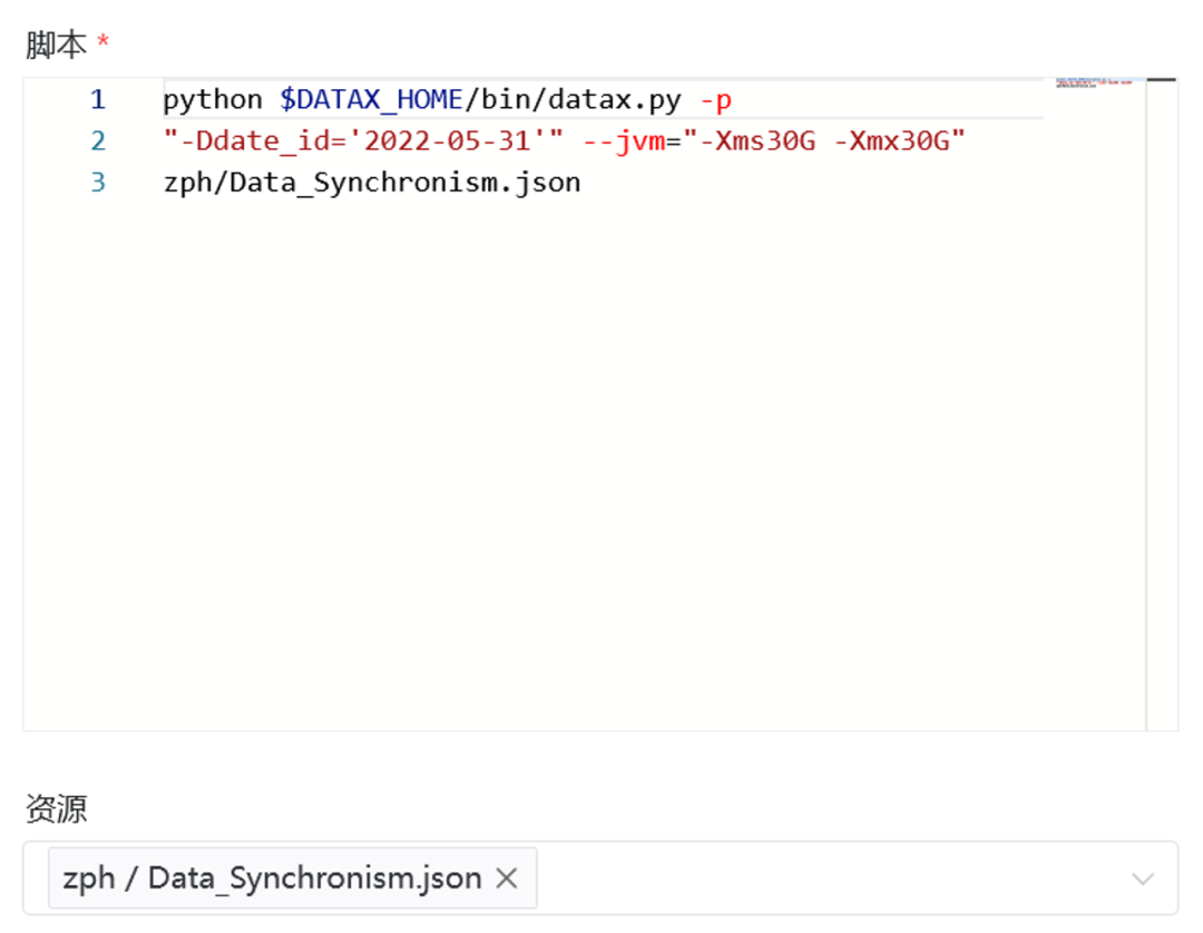 第三种方式是在DS中建立shell任务,然后通过shell去调用部署在服务器上的DataX脚本,并且要把脚本放到DS的资源中心里面: