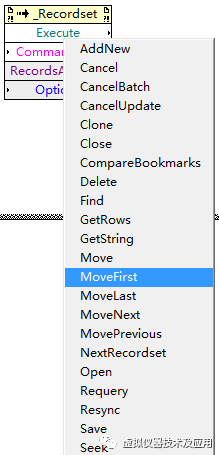 再左键点击该节点,将该节点的方法设置为“MoveFirst”,如下图所示: