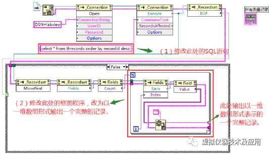 1)从“读取指定的单条记录.vi”复制粘贴如下框图程序: