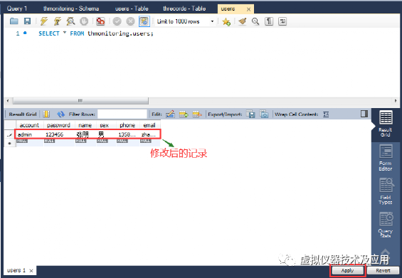 1)在显示表格记录的地方直接修改记录,然后点击“Apply”按钮,如下图所示: