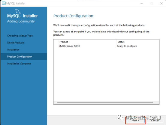 (5)在弹出的窗体中点击“Next”,进行MySQL Server的配置;