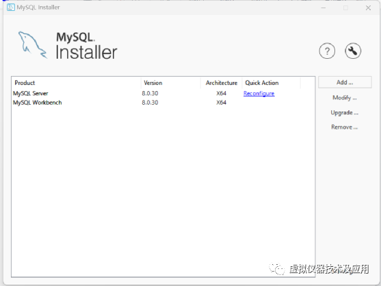 下图为打开的“MySQL Installer - Community”程序界面,可在该界面中进行修改MySQL配置的操作。