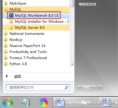 (1)在“开始”菜单找到MySQL WorkBench程序并单击;