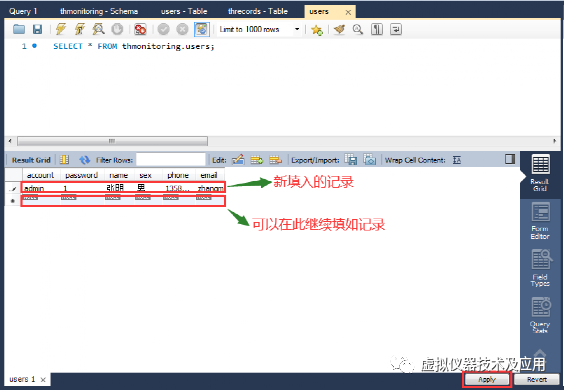 1)在上图中显示表格记录的地方直接填入记录,然后点击“Apply”按钮,如下图所示: