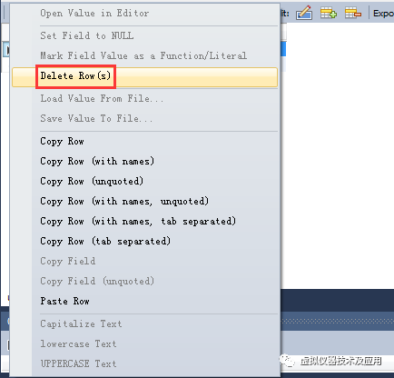 1)在显示表格记录的地方选中要删除的记录,点击右键,在弹出的菜单中选择“Delete Row(s)”,如下图所示:
