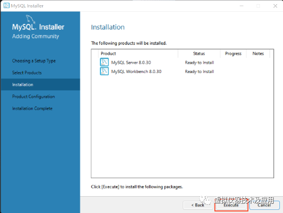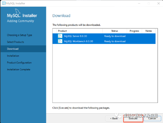 (4)在弹出的窗体中点击“Execute”,执行选择产品的安装,并等待安装完成;