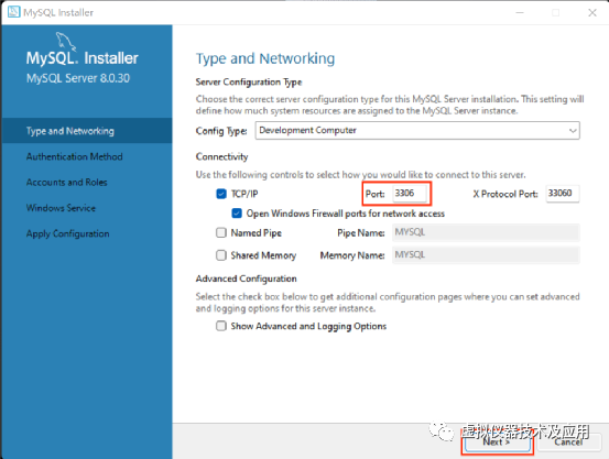 (6)在弹出的窗体中点击“Next”,进入下一步。大家这里注意我们配置的MySQL数据库服务器访问的端口为“3306”,其他程序是通过TCP/IP的方式通过MySQL数据库服务器的IP地址和端口来连接访问数据库的;