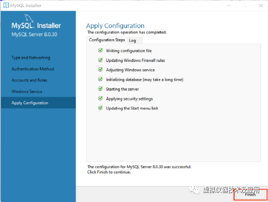 配置执行完成后点击“Finish”,完成MySQL Server的配置;