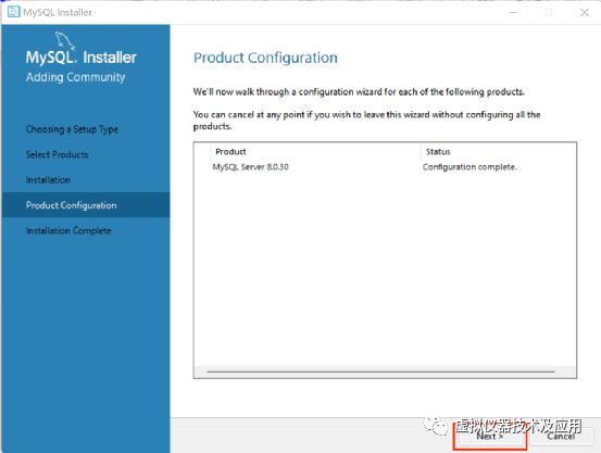 (5)在弹出的窗体中点击“Next”,进行MySQL Server的配置;