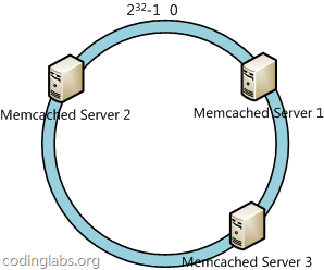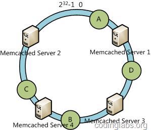 同时数据定位算法不变,只是多了一步虚拟节点到实际节点的映射,例如定位到“Memcached Server 1#1”、“Memcached Server 1#2”、“Memcached Server 1#3”三个虚拟节点的数据均定位到Server 1上。这样就解决了服务节点少时数据倾斜的问题。在实际应用中,通常将虚拟节点数设置为32甚至更大,因此即使很少的服务节点也能做到相对均匀的数据分布。