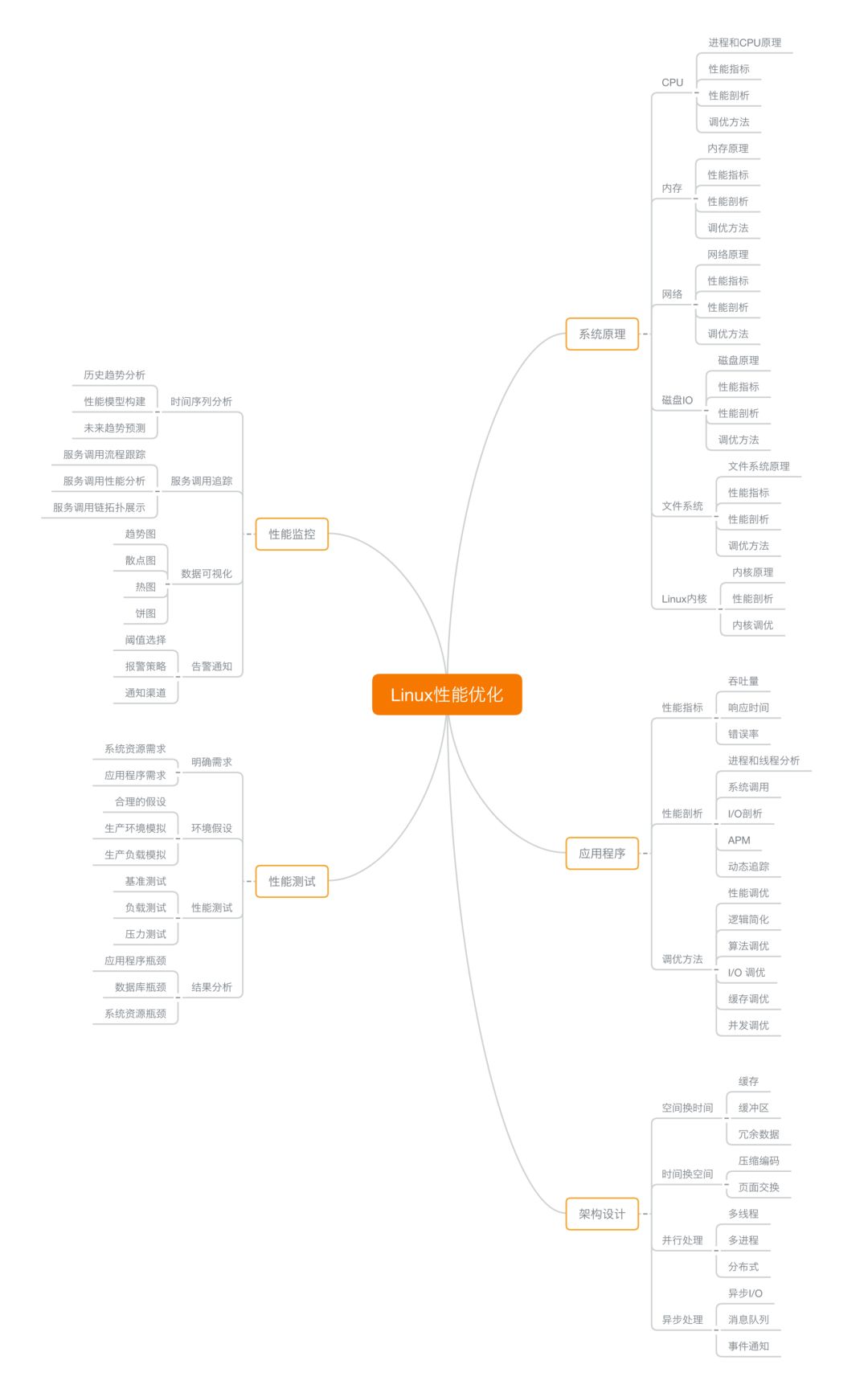 1、掌握Linux必备的基本原理以及Linux系统必懂的性能指标(CPU 性能、磁盘 I/O 性能、内存性能以及网络性能等)和性能工具。