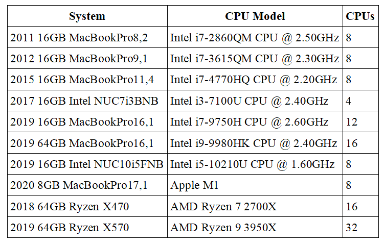 当然,英特尔拥有的至强处理器将单核性能推到了比这些面向笔记本电脑的英特尔更高的水平。但是,请查看低于5个客户端的大型群集,它显示了在功率和热量受到限制的情况下,它们在同一性能范围内停留了多长时间。我上次提到英特尔在我研究的MacBook机型的8年中仅使性能翻了一番,这并不是行业领先的性能。AMD在这方面做得更好,让他们的单核boost在他们的3000系列中具有竞争力。即使是去年的3950X--拥有强制水冷系统,才勉强比M1快,除非是遇到8个以上的客户端的情况。如果Apple可以将M1设计置入更大的内存空间并添加更多核,那么它可能是有力的中型服务器竞争者。这不会影响大家把服务搬到巨大的云计算系统上,在这种的数据中心上,超过48个核是很有必要安装的。有云计算规模的ARM服务器,苹果的ARM指令集mac使得开发该平台变得更容易。我期待着英特尔、AMD、苹果和其他ARM设计师之间的四方竞争。对于可以利用它的开发人员来说,M1是一个巨大的进步。希望这些显而易见的虚拟化问题在不久的将来能够得到解决。许多开发人员需要像Docker和VMs这样的工具来构建现代云软件。在解决这个问题之前,M1 mac并不适合所有人。在你考虑购买之前,确保你了解你的需求已经得到支持。为了使本文更完整,这是为进行基准测试而测试的硬件的详细列表,并且您可以通过挖掘我的Geekbench Profile来深入了解我在这里拥有的系统信息。