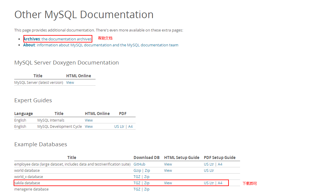 页面地址: https://dev.mysql.com/doc/sakila/en/sakila-installation.html