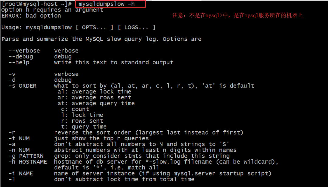 如何使用此工具: 可通过命令 : mysqldumpslow -h 查看使用教程
