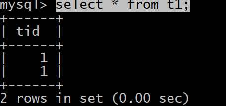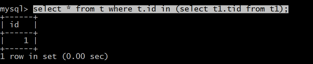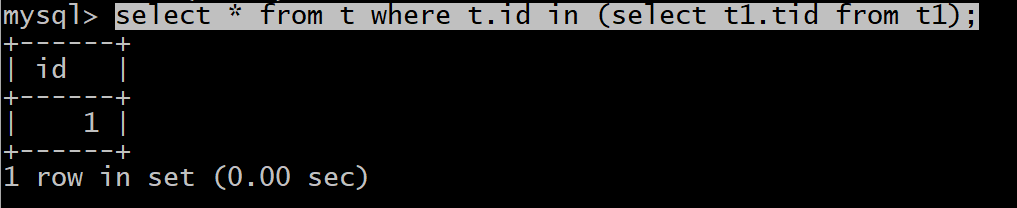 我们要进行一个子查询,需求:查询t表中id在t1表中tid的所有数据;