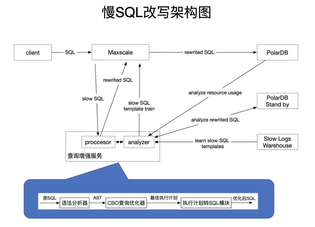 在计算节点这块PolarDB还有对应的MaxScale可以实现对慢SQL的自动改写及优化,从而自动提高SQL的执行效率。