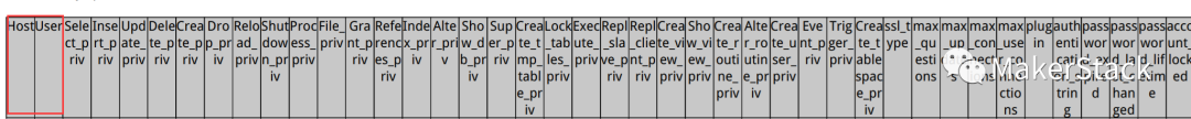 user表中的字段。可以直接通过修改这个表中的字段来为用户赋予权限