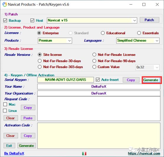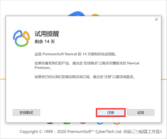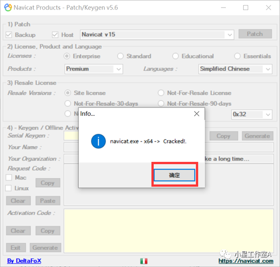 7、打开navicat程序点击【注册】后再回到激活软件点击【Generate】