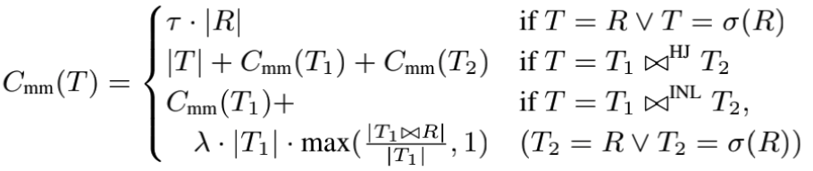 比如 HashJoin 的代价就是左右儿子的代价,加上产出的行数,也就是 |T|;