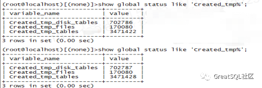 分配了128M,连续执行两次show global status like ‘Created_tmp%’