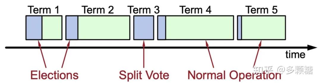 时间被划分成一个个的任期(Term),每个任期都由一个数字来表示任期号,任期号单调递增并且永远不会重复。