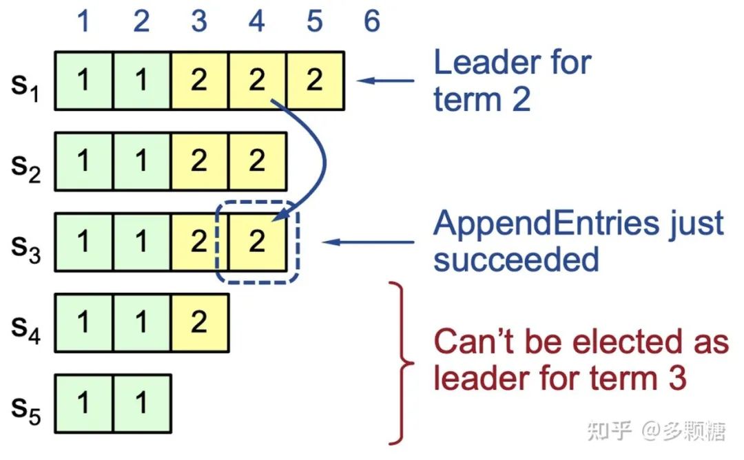 此时 S5 无法赢得选举了,它无法从 S1-S3 获得选票。
