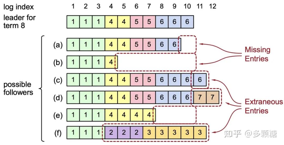 可以从图中看出,Raft 集群中通常有两种不一致的日志: