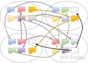 Raft 的 Leader 向 Follower 的心跳间隔一般都较小,在 100ms 粒度,当复制实例数较多的时候,心跳包的数量就呈指数增长。如图: