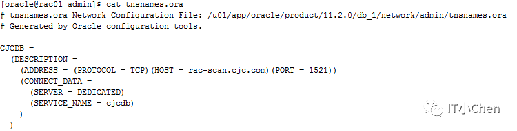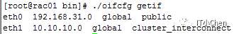 [root@rac01 bin]# ./srvctl config scanSCAN name: rac-scan.cjc.com, Network: 1/192.168.31.0/255.255.255.0/eth0SCAN VIP name: scan1, IP: /rac-scan.cjc.com/192.168.31.60SCAN VIP name: scan2, IP: /rac-scan.cjc.com/192.168.31.70SCAN VIP name: scan3, IP: /rac-scan.cjc.com/192.168.31.50