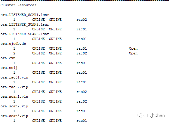[root@rac01 bin]# ./srvctl status database -d cjcdb -vInstance cjcdb1 is running on node rac01. Instance status: Open.Instance cjcdb2 is running on node rac02. Instance status: Open.