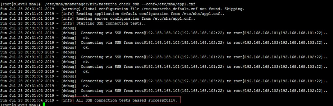 /etc/mha/mhamanager/bin/masterha_check_ssh --conf=/etc/mha/app1.cnf