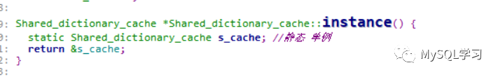 Shared_dictionary_cache是全局的,使用的是单例模式,这部分可以在dd::cache::Shared_dictionary_cache::instance函数中找到他的static变量,如下: