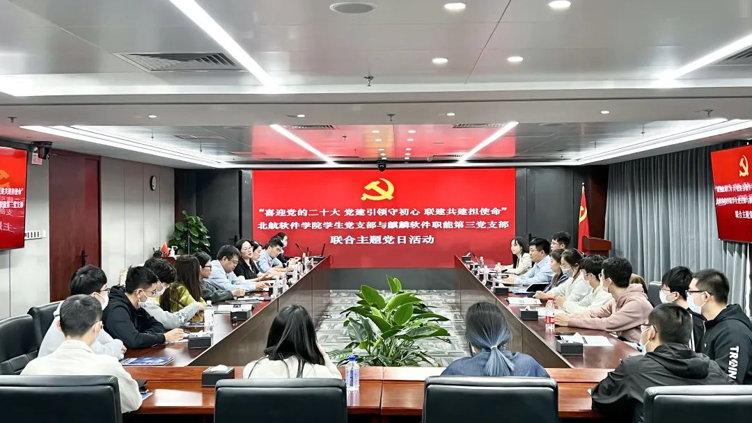 10月9日下午,北京航空航天大学软件学院(以下简称北航软件学院)学生党支部与麒麟软件职能第三党支部开展联合主题党日活动。北航软件学院党委书记雷晓锋、党委副书记孙铭涛、分团委书记曲乐,麒麟软件职能第三党支部书记、高级副总裁张娜,党群工作部主任程志强参加活动。活动由麒麟软件职能第三党支部组织委员、教育发展中心副总经理杭斯乔主持。