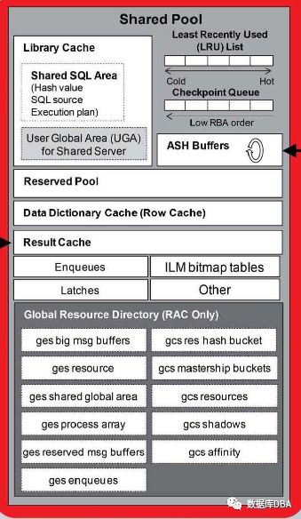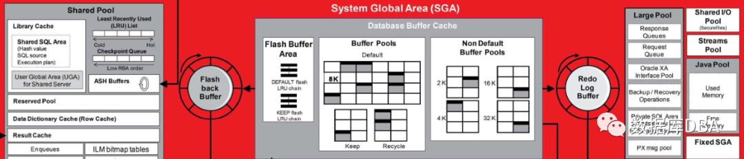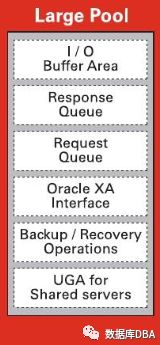 通过从大池中分配会话内存给共享服务、Oracle XA或并行查询,oracle可以使用共享池主要来缓存共享SQL,以防止由于共享SQL缓存收缩导致的性能消耗。此外,为Oracle备份和恢复操作、IO服务进程和并行查询分配的内存一般都是几百K,这么大的内存段从大池比从共享池更容易分配得到。