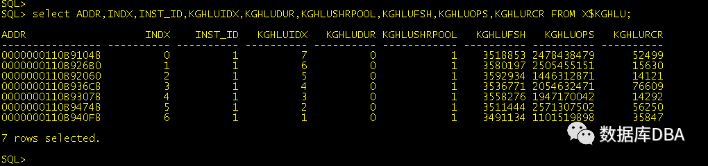 UGA heap中的段可以通过表X$KSMUP查到(它的结构和X$KSMSP相同)。UGA堆包含了存储一些固定表(X$表)的永久内存(依赖与特定参数的设置,如OPEN_CURSORS,OPEN_LINKS和MAX_ENABLED_ROLES)。除此以外,大部分的UGA用于私有 SQL区。UGA内存的所在依赖于会话的设置。