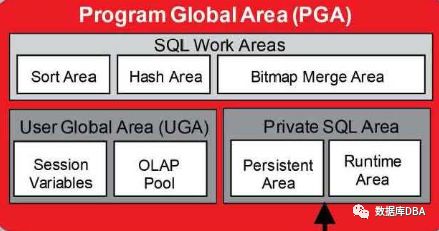 在专用服务(Dedicated Server)模式下,一个服务进程与一个用户进程相关,PGA就包括了堆空间和UGA。而UGA(User Global Area用户全局区)由用户会话数据、游标状态和索引区组成。