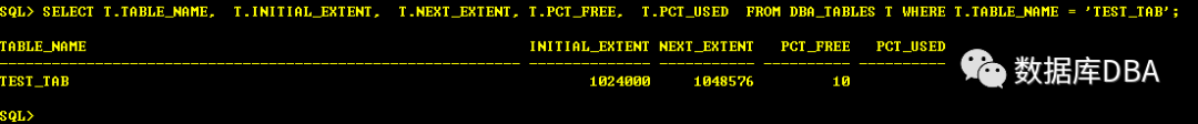 WHERE T.SEGMENT_NAME = 'TEST_TAB';