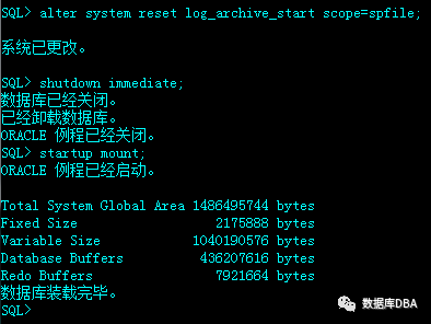 ORA-32004报错是因为刚才修改了系统参数log_archive_start,但是这不会影响后续操作。