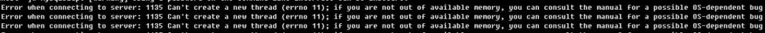 ERROR 1135 (HY000): Can't create a new thread (errno 11); if you are not out of available memory, you can consult the manual for a possible OS-dependent bug。