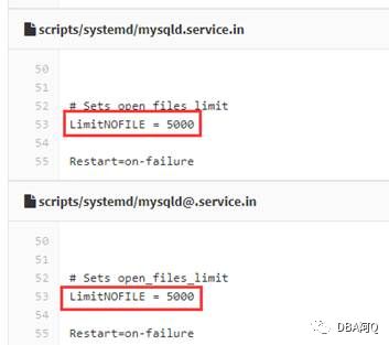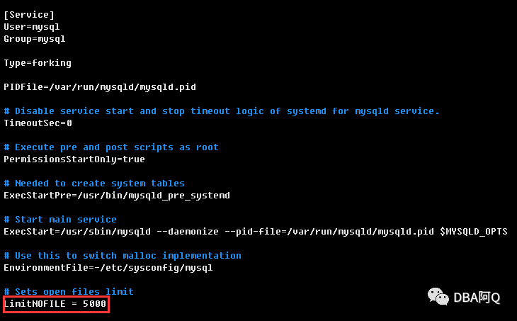 1、当以systemd管理mysql服务时,在下面3个配置文件中同时制定open_files_limit参数时,最终会以service配置文件为准