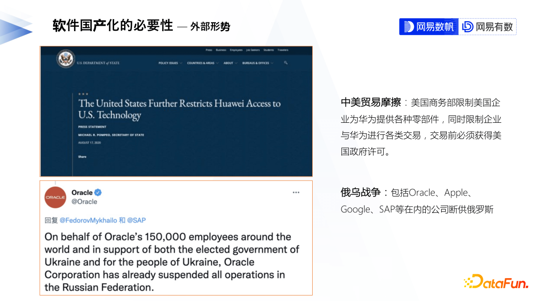 为什么要做软件国产化? 软件国产化⾯临的挑战 数帆⾃主⼤数据平台介绍