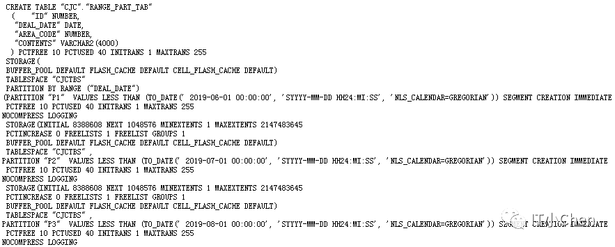 select dbms_metadata.get_ddl('TABLE','RANGE_PART_TAB','CJC') from dual;