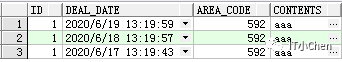 insert into RANGE_PART_TAB values(1,sysdate+30,592,'aaa');insert into RANGE_PART_TAB values(1,sysdate+31,592,'aaa');insert into RANGE_PART_TAB values(1,sysdate+32,592,'aaa');commit;select * from RANGE_PART_TAB order by 2 desc;