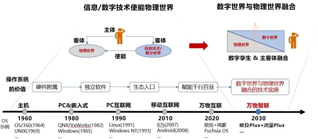 近年来,尤其受到疫情影响,社会数字化转型至少加速五年。在过去,人类通过不断创新数字技术来连接物理世界;在当下,元宇宙、数字身份等这些新技术的出现,会推动数字世界和物理世界的融合。操作系统从硬件的附属品到一个独立软件,再到生态入口,其重要性不断增加。在万物智联时代,操作系统会发挥更关键的作用。
